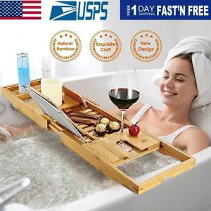 Bamboo Bath Tray Table Bathtub Caddy Tray Over the Tub Shelf Bath Holder Desk