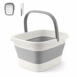 Collapsible Foot Bath Foot Soaking Tub | Portable Foot Spa Pedicure Bowl | Large Basin to Soak & Wash Feet | Folding Bucket with Carry Handle | White & Grey, Blue, Green [White & Grey]