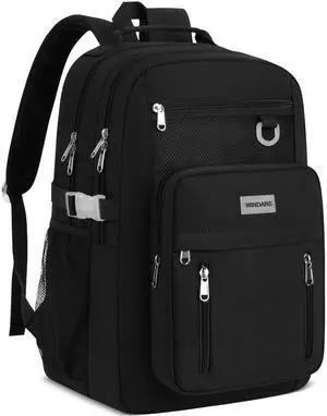 WINDARS School Backpack for Girls Boys, Cute Aesthetic College Bookbag 15.6 Inch Laptop Women Backpacks Large Casual Daypack for Elementary to High School Students (Black)