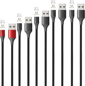 N. NETDOT Gen 10 Magnetic Charging Cable, Fast Charging, Compatible with USB-C and Micro-USB Phones, 10 Tips Included (5 Pack,1ft/3.3ft/5ft/6.6ft/6.6ft)
