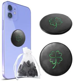 2 Pcs Shungite Sticker for Cell Phone + Raw Shungite Stones Set - 30 mm/1.18 inch Shungite Plate for Laptop Computer - Four Leaf Clover