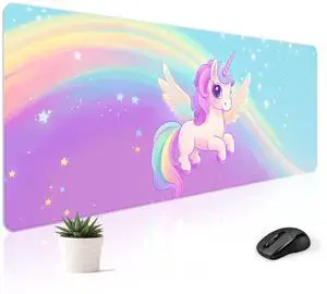 QEOPGNE Fantasy White Horse Mouse Pad Gaming Pegasus Horse Large Mousepad Aesthetic Animal Horse Desk Mat Desk Pad for Computer Keyboard and Mouse Mat Non-Slip Base 23.6 x 11.8 Inch