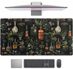 Black Aesthetics Desk Mat Mouse Pad Large Gaming Mouse Pad Desk Pad Mousepad, Mystical Green Plant Computer Laptop Keyboard and Mouse Mat, Desktop Protector Mat for Women Girl Office 31.5x15.8 in