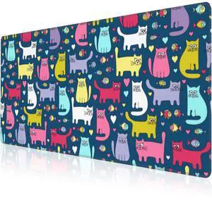 Mouse Pad, Large Cartoon Cats and Fish Desk Mat, Extended Non-Slip Gaming Keyboard Mousepad Desk Pad, Thick Stitched Edges Waterproof Mouse Mat 31.5"x15.7" (Funny Doodle Kittens)