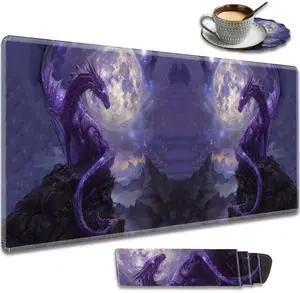 Extended Gaming Mouse Pad 31.5" x 11.8", with Edge Stitching, Non-Slip Rubber Base Keyboard Pad, Suitable for Work, Game, Office, Home and Coasters, Starry Purple Dragon