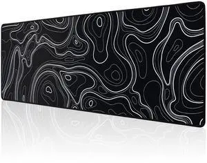 ALOANES Waterproof Mouse Pad with Durable Stitched Edge, XL Gaming Keyboard Pad, Non-Slip Rubber Base, Extended Desk pad for Gamer, Office & Home, Black Topographic Map Mousepad 31.5''x 11.8''x 0.12''