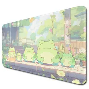 llsxi Green Anime Cute Forg Big Mouse Pad,XXL 15.7x35.4 inch Large Gaming Mouse Pad,Non-Slip Base Desk Mat,Extended Game Mousepad Keyboard Pad Long Desk Pad Home&Office