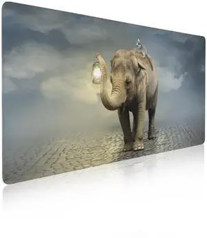 Desk Mat,Elephant Large Mouse Pad for Desk,African Animals Non-Slip Rubber Base Mouse Pad with Stitched Edges,Keyboard Pad Mouse Mat for Computer,Work,Gaming,Desk Decor 31.5x15.7 in