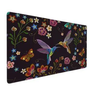 Gbuzozie Extra Large Mouse Pads Hummingbirds and Flowers XXL Mousepad with Stitched Edges Humming Birds Non-Slip Rubber Base Computer Keyboard Pad Desk Mat for Home Office Desk Decor, 35.4" X 15.7"