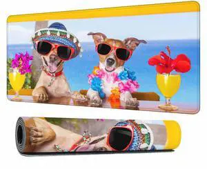 Y YIHANGBEST Two Funny Dogs Large Gaming Mouse Pad Cocktails Bar Beach Ocean Club Party Long Mousepad Non-Slip Rubber Base Keyboard Mat for Desk,Office,Home 35.4"X15.7"