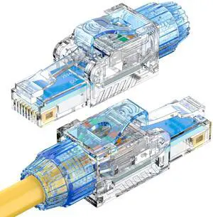 RJ45 Connectors Toolless10 Gigabit, Cat5e Cat6 Cat6A Cat7 Network Cable Connector, Gold-Plated Copper, 22-26 AWG, 6-Pack