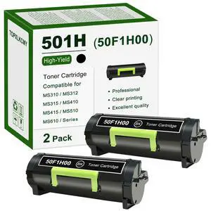 501H (50F1H00) High Yield Black Toner Cartridge 2-Pack Replacement for Lexmark MS310 MS310dn MS312 MS312dn MS315 MS315dn MS410 MS410dn MS415 MS415dn MS510 MS510dn MS610 MS610dn Printer