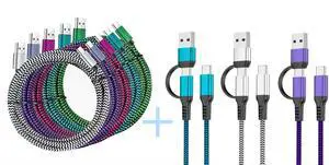 QQLIKE USB Type C Cable,5Pack 6FT Braided USB C Fast Charge and 3Pack 6FT 2in1 USB C Cable Compatible with iPhone 15/15 Pro max Samsung Galaxy S23 Ultra/S23+