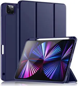 Wenlaty Compatible with iPad Pro 11 Inch Case 4th/3rd/2nd Generation with Pencil Holder, for 11 Inch iPad Pro Case 2022/2021/2020, Protective Trifold Cover with Soft TPU Back, Auto Wake/Sleep, Navy