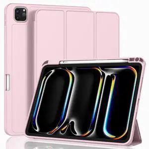 ZryXal iPad Pro 11 Inch Case (M5) 2025/ (M4) 2024 (Model: A2836/A2837/A3006), Trifold Stand Smart Cover with Pencil Holder and Soft TPU Back, Auto Wake/Sleep (Pink)