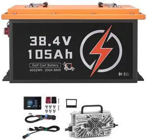 36V 105Ah Golf Cart Lithium Battery, 36 Volt Golf Cart Battery with 200A BMS, LCD Monitor and Mobile APP, LiFePO4 Battery with 600A Peak Current, 20A Charger and 4000+ Cycles, for Golf Carts