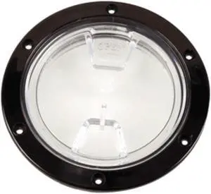 BECKSON MARINE INC BECKSON 4" CLEAR CENTER SCREW OUT DECK PLATE BLACK 4.5" CUT DP40-B-C