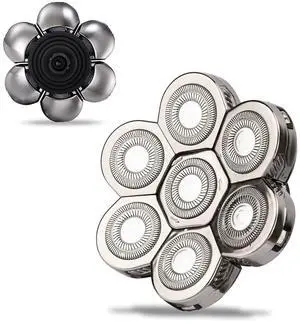Head Shaver Replacement Heads, 7D Rotary Blades, Silver, Men's Electric Shaver Replacement Heads, 7 Pieces