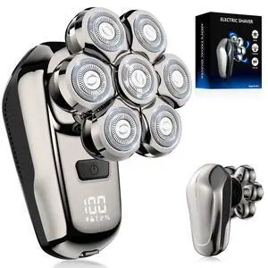 7D Rotating Head Shaver for Bald Men, Magnetic Detachable Head Shaver, IPX7 Waterproof Wet or Dry Electric Razor for Men, LED Display Rechargeable Shaving with Type-C Charge, Mens Gifts