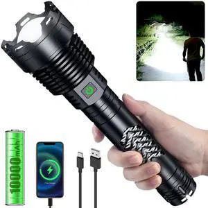 Rechargeable LED Flashlights 10000.00 High Lumens, High Powered Waterproof Tactical Flashlight Spotlight Flashlight for Home, Bright Flashlight Black for Outdoor Camping Emergency