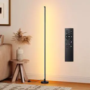 Corner Lamp, Minimalist Floor lamp with Remote Control, Dimmable Corner Light,Corner Floor Lamp for Living Room, Bedroom, Home Office, 7 Color Temperature 3000K-6000K (black-56.7in, 1 Pack)