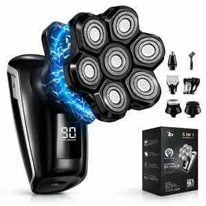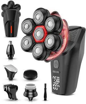 7D Head Shavers for Bald Men - 5 in 1 Electric Head Hair Shaver, Head Electric Razor with Nose Hair & Beard Trimmer Cordless IPX6 Waterproof Wet Dry LED Display Travel Case