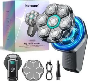 7D Rotating Head Shaver for Bald Men, Magnetic Detachable Head Shaver, IPX7 Waterproof Wet or Dry Electric Razor for Men, LED Display Rechargeable Shaving with Type-C Charge, Mens Gifts