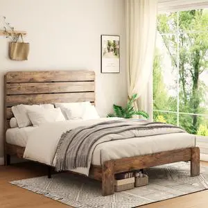 Wood Platform Bed Twin Bed Frame Mattress Foundation Sleigh Bed with Headboard/Footboard/Wood Slat Support