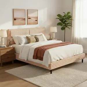 Simple Modern Camel Plush Soft Bed Comfortable Backrest Bedroom Bed,King