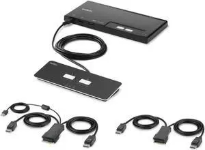 o Belkin KVM switches come uniquely designed to save rack space in your server room. With a unique plug and play design, a KVM switch also saves you installation time. An integrated mounting track lets you install the switch in varying locations. A USB display port KVM switch with an HDMI® port transmits video signals in ultra-high definition (UHD) resolution. Many audio/video switches often support cross-platform systems, including VGA video interface, DVI-D and DVI-I technology, making them versatile. Equipped with a programmable auto-scan function and multiple hotkeys, some offer continuous server monitoring for reducing downtime. A KVM switch enables you to manage different PCs or servers using a single keyboard, video monitor and mouse. Most Belkin KVM switches have built-in USB ports for connecting your peripherals, eliminating the need for a USB hub. Others come with an on-screen display (OSD) interface for seamless management. Embedded with flash-upgradable firmware, they ensure consistent compatibility. Monitor device status easily using built-in LED lights that display accurate operational status. Models with customizable port coloring and naming facilitate easy identification. Hot-swapping support lets you quickly switch between ports without keyboard or mouse delay.