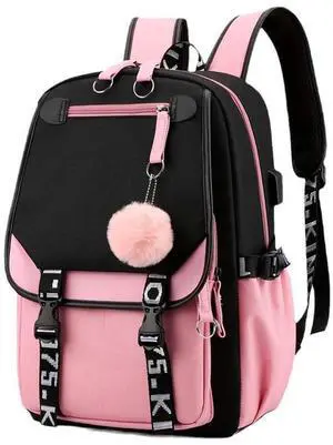 Backpack Laptop bag School Backpack for Girls Middle School Students Bookbag with USB Charging&Headphone Port (pink with black)