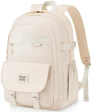 KROSIAS School Backpack for Teen Girls, 15.6 Inch Laptop Backpack Women Kids Bookbag for Middle High School Cute College Bag for Students, Beige