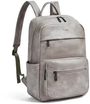 Mroede Leather Laptop Backpack for Women 15.6 Inch Laptop Travel Backpack Purse Casual Daypack with Laptop Compartment for College Work Nurse Business Weekender, Grey