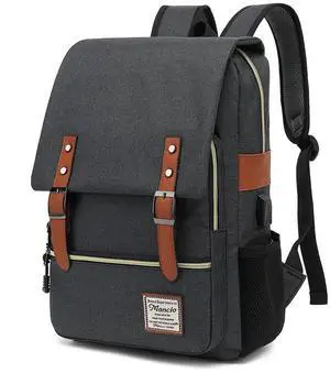 Mancio Vintage Slim Laptop Backpack for Women Men,Tear Resistant Business College Bag with USB Charging Port,Fits up to 15.6Inch Laptop in Black