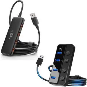 Qeefun 10Gbps USB 3.2 Hub with 4 USB A Data Ports, USB 3.2 Gen 2 Splitter, 4ft Extended Long Cable, Bundle of 4-Port USB 3.0 Hub, Individual LED Power Switches, USB Multiport Splitter with 4ft USB Ext