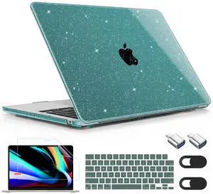 May Chen for M4 MacBook Air 13.6 inch Case 2025 2024 2023 2022 Release A3240 M3 A3113 M2 A2681, Plastic Hard Shell Case for MacBook Air 13.6" with Retina Display Fits Touch ID, Dark Cyan Glitter