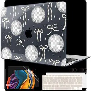 MEEgoodo for MacBook Air 13 inch Case 2021 2020 2019 2018 Released A2337 M1 A2179 A1932 with Touch ID, Plastic Hard Shell & Keyboard Cover Compatible with MacBook Air Case 13.3,Silver Disco Balls&Bows