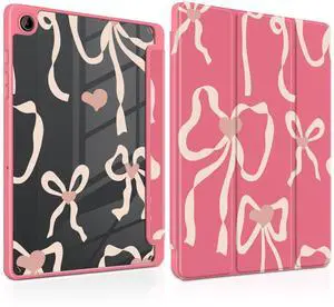 MEEgoodo Case for Samsung Galaxy Tab A9 Plus 11 inch Cover 2024 2023 with S Pen Holder, Tablet Case with Transparent Acrylic Back Shell + Trifold Stand + Auto Wake/Sleep,Aesthetic Coquette Ribbon Bow