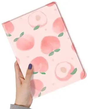 Floral Case for iPad 9th Generation 8th 7th Gen 10.2 inch Case Fruit Pattern Peach Cute Slim Leather Folio Smart Cover with Pencil Holder Auto Sleep/Wake, Color P