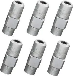 Grease gun connectors, grease gun heads, heavy-duty grease connectors for handheld and most pneumatic grease guns, standard nozzles, NPT, 1/8 inch, 6 assemblies