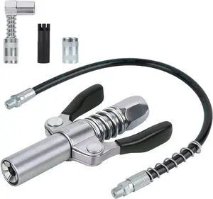 Grease gun connector set - 12000 PSI locking grease gun head for quick locking of grease gun connectors, 90-degree grease gun nozzle can be installed with all 1/8-inch NPT grease gun connectors