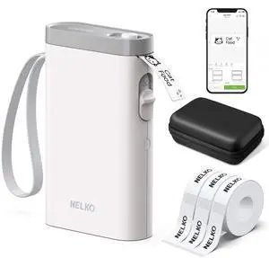 Nelko Label Maker Machine with Tape, P21 Bluetooth Label Printer with 3 Tapes & Case, Wireless Mini Label Makers with Multiple Templates Icon Font Custom for School Office Home, White