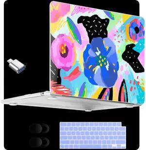 MecBevia Compatible with MacBook Air 15 inch Case, M4 A3241/M3 A3114/M2 A2941 (Released 2025 to 2023), Hard Shell, Keyboard Cover, Screen Protector, Webcam Cover & Type-C Adapter, ColorfulFlowers
