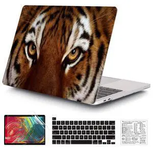 QCzyc Compatible with MacBook Pro 13 Inch Case M2/M1 2025 2022-2017 A2338 A2289 A2251 A2159 A1989 A1706 A1708 Plastic Hard Shell Case & Keyboard Skin&Mac OS Keyboard Sticker (Tiger)