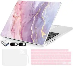 MecBevia for MacBook Pro 16 Inch Case (20252021, M4/M3/M2/M1 Pro & Max, Model A3403 A3186 A2991 A2780 A2485), Hard Shell & Keyboard Cover, Screen Protector, Webcam Cover, Adapter, Pink Marble