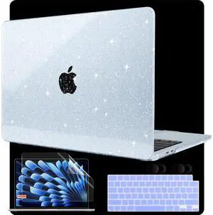 MEEgoodo Glitter Case for M4 MacBook Air 13.6 inch, Fit Model A3240 (M4)/A3113 (M3)/A2681(M2), Laptop Hard Shell Cases for MacBook Air 13" with Keyboard Cover & Camera Cover, Sky Blue