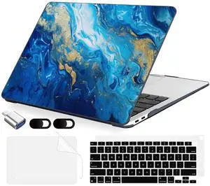 MecBevia Compatible with MacBook Air 13.3 inch Case 2021-2018 Release A2337 M1 A2179 A1932 Touch ID, Plastic Hard Shell&Keyboard Cover&Screen Protector&Webcam Cover&Type-C Adapter, Oceans