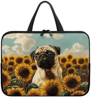 ZIATUBLES Sunflower Pug Dog Print 360Protective Laptop Sleeve Case with Handle, Lightweight Computer Cover Bag Laptop Sleeves for Student Teens Compatible with 10-17 Inch Tablet, 12inch