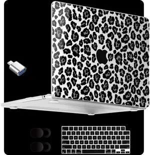 MEEgoodo for MacBook Air 15 inch Case (M4/M3/M2) 2025 2024 2023, Cover Fit Model(A3241/A3114/A2941) for 15.3-inch Laptop, Clear Shell with TPU Keyboard & Webcam Cover, Snow Leopard Texture