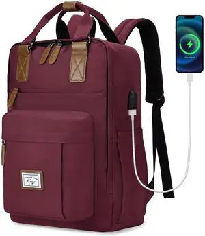 Kasqo Backpack for Women Men, 15.6" Large Capacity Water Resistant Laptop Fashion Bag with USB Charging Port for Travel Work, Red